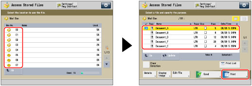 Select the desired Mail Box → select the desired file → press [Print].