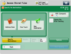 You can specify and send to up to 256 destinations at the one time. However, if a group address is specified for the destination, each address stored in that group is counted as one destination. If you try to send to a file server in which [Confirm Before Sending] is set to 'On', a screen appears prompting you to enter the file server password. In this case, enter the file server password. If you want to register a file server in a group address, set [Confirm Before Sending] to 'Off'. You cannot send to a group address including a file server in which [Confirm Before Sending] is set to 'On'. (See "Registering a File Server Address.") If you want to automatically delete the selected document after it is sent, press [Delete File After Sending]. You cannot print or store the document in another inbox while it is being sent. If the selected destination is a group address which contains a mail box, the file you are sending will not be sent to (and stored in) that mail box. The destinations registered in the one-touch buttons on the Quick Menu of the client machine are not updated even if those registered in the one-touch buttons of a server machine are updated. Confirm that the destination is not old if you cannot send to it. |
