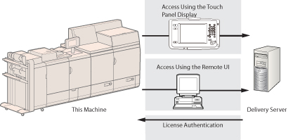 License registration may be required, depending on the system option. Depending on the installed system option, you can download the manual or related software for the system option from the following URL. http://canon.com/fau/downloads When downloading manuals and related software for system options, prepare the license access number certificate that was included in the package. If there is no manual to download, see the description of the function in this manual. Multiple users cannot use the "Register/Update Software" at the same time. |