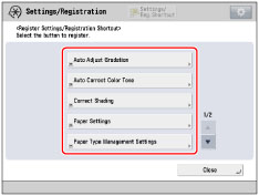 The [Settings/Reg.Shortcut] button can be displayed on the top of the screen or on the Main Menu screen. For more information, see