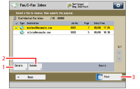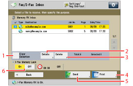 1 | Select All (Max 32 Files)/Clear Selection Press to select all of the files in the inbox. If you select a file, this key changes to [Clear Selection]. |