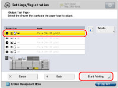 To adjust the image position on long sheets, print out a long sheet test page. The adjustment can be made more efficiently than with the test page printed out by [Output Test Page] under <Adjust Image Position>. (The long sheet test page is available from the online manual site.) |