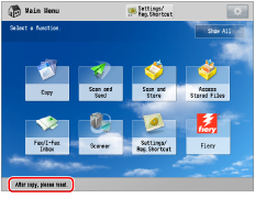 | As [OK] is not displayed, only an administrator can close this message board. When this message board is displayed, you cannot operate the machine. This message board is best suited when you want to stop the operations of the machine temporarily. |