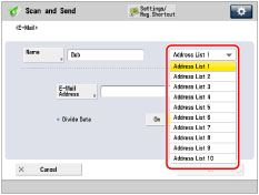Press the drop-down list → select an address list from Address List 1 to 10.