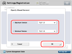 Specify [Maximum Version] and [Minimum Version]. → Press [OK].