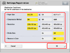 Set the destination conditions according to the specifications of the recipient's machine. If you set conditions that the recipient's machine does not support, a transmission error may occur. |