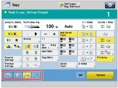 (See "Switching the Copy Basic Features Screen.")You can register up to six desired shortcuts from [Options].