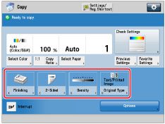 (See "Registering/Editing/Deleting Favorite Settings Buttons.")This mode can be set when the Copy function is available for use. For information on the optional products required to use the Copy function, see