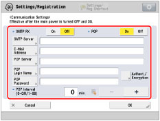 Press [Off] for <SMTP RX> → [On] for <POP>.