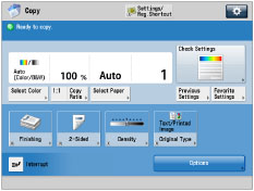 If [Department ID Management] or [Limit Functions] for [Department ID Management] is set to 'On', the startup screen may differ from the screen set to be displayed as default at startup. If [Department ID Management] is set to 'On', and if a function restricted by Limit Functions is set for the default screen, the Main Menu screen appears at startup. (If [Department ID Management] is set to 'On', [Copy] is restricted by Limit Functions.) To display the function you set for the default startup screen, select the function on the Main Menu screen → enter the Department ID/PIN on the Log In screen. If all functions in [Limit Functions] for [Department ID Management] are set to 'On', even if you set [Open Status Monitor/Cancel] to 'On', the Log In screen appears at startup. If you press , the Status Monitor/Cancel screen is displayed. (If you want to display the Status Monitor/Cancel screen, no Department ID/PIN is necessary.)For more information on Department ID Management, see "Specifying Department ID Management." |