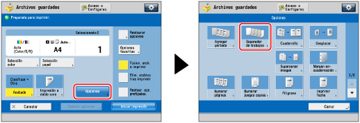 Puede establecer el modo Separador de trabajos sólo si selecciona varios archivos y establece el modo Fusion. arch. e imprimir. (Consulte "Fusionar archivos al imprimirlos".) No se puede imprimir en las hojas de separación de trabajos. Las hojas de separación de trabajos no se cuentan como impresiones. Si quiere establecer tanto Agregar portada como Separador de trabajos, seleccione el mismo tamaño de papel. |