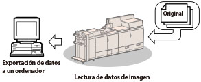 La función de lectura en red permite utilizar este equipo como un escáner convencional. Puede leer un documento con el equipo y ver los datos en la aplicación que esté utilizando en su ordenador. Puede leer imágenes hasta un tamaño de A3 con una resolución de 600 x 600 ppp.
