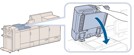 Cierre con cuidado el alimentador para evitar pillarse sus manos, porque esto podría resultar en lesiones personales. No presione con fuerza sobre el alimentador cuando utilice el cristal de copia para hacer copias de libros gruesos. Esto puede hacer que se rompa el cristal de copia con el consiguiente riesgo de accidente. Tenga en cuenta que la luz emitida desde el cristal de copia puede ser muy intensa al cerrar el alimentador. |
