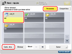 Seleccione [Personales] → seleccione el botón personal que desea modificar→ pulse [Camb. nbre.].