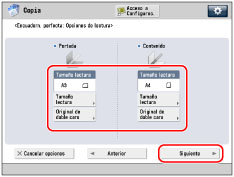 Tamaño de acabado | Tamaño del documento principal | Tamaño de la página de portada |
