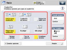 Pulse [Lectura para cuadernillo] → seleccione el tamaño del original → pulse [Aceptar].