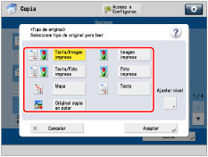 Puede seleccionar manualmente el tipo de original de acuerdo con el tipo de imagen. Están disponibles los modos de tipo de original siguientes.