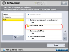 Después de conectarse a la red, realice las siguientes operaciones. (Para obtener más información, consulte las descripciones correspondientes.) Configure la fecha y hora y las opciones de gestión de usuarios. (Para información sobre la configuración de la fecha y la hora, consulte "Fecha y hora actuales". Para información sobre las opciones de gestión de usuarios, consulte "Restringir el acceso mediante autenticación". Configure las opciones de red. Instale los controladores necesarios. (Para más información sobre la instalación de controladores consulte el manual de imagePRESS Server). Si es necesario, instale una utilidad. (Consulte los manuales suministrados con la utilidad.) |