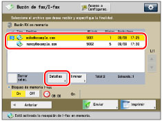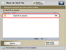 → [Buzón de fax/I-fax] → [Buzón RX en memoria].