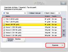 Seleccione el mismo tipo de papel que el cargado en la Unidad de Inserción N. |