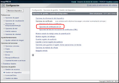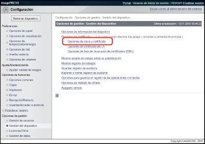 Haga clic en [Configuración] → [Gestión del dispositivo] para <Opciones de gestión>.