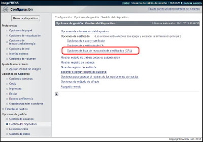Haga clic en [Opciones de lista de revocación de certificados (CRL)].