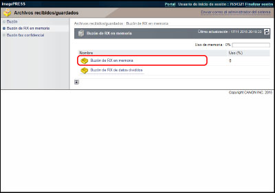 Haga clic en [Archivos recibidos/guardados] → [Buzón de RX en memoria] → [Buzón de RX en memoria].