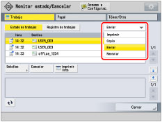 También puede cancelar un trabajo de envío pulsando mientras se está leyendo el trabajo. |