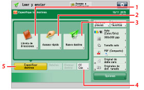 5 | [Especificar destinos] Se pulsa para mostrar los métodos para especificar los destinos o la lista de destinos. |