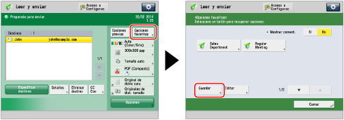 → [Leer y enviar] → establezca el destino y las opciones de envío para guardar.