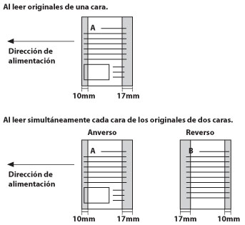 La opción prefijada es Auto (Color/ByN). Cuando se ha establecido [Auto (Color/B/N)] y los originales contienen secciones en color, el equipo los lee en el modo Todo color. No obstante, en las siguientes condiciones, el equipo puede leer los originales en color en el modo Blanco y negro. Para evitarlo, establezca el modo de color a [Todo color]. Si los originales contienen muy pocas secciones en color Si las secciones en color de los originales son cercanas al negro Si los originales contienen densidades de color tenues Si las partes en color están situadas únicamente en el intervalo indicado en el esquema de abajo, cuando se cargan los originales en el alimentador ![]() |