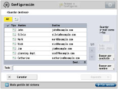 Puede guardar una dirección de e-mail obtenida buscando la listas de directorios de la red con servidores LDAP (Lightweight Directory Access Protocol).
