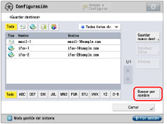 Si se pulsa [Buscar por nombre], aparece una pantalla para acotar la búsqueda en la libreta de direcciones.
