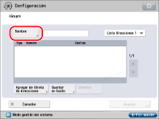 Si desea guardar una dirección de grupo, los destinos deben estar guardados por adelantado, como direcciones de e-mail, I-fax y servidores de archivos. |