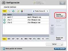 La dirección de e-mail que introduzca se guardará en la lista de direcciones que seleccione aquí.