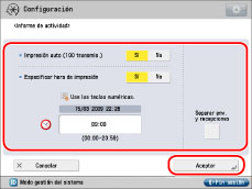 Para imprimir el informe a una hora concreta, pulse [Sí] → introduzca la hora con