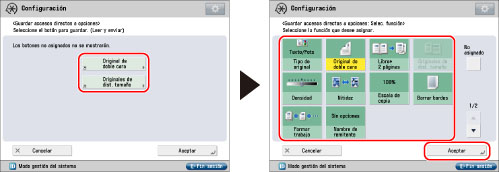 Pulse un botón de acceso directo → seleccione la opción que se guardará en el botón→ pulse [Aceptar].