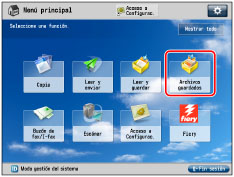 Puede configurar la pantalla [Archivos guardados] para imprimir.