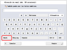 Si pulsa [Mayús.] de la pantalla de teclado, podrá introducir mayúsculas.