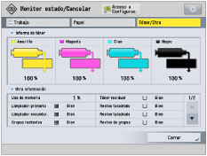 Si establece [Tóner/Otro] como Pantalla prefijada (Monitor estado/Cancelar):
