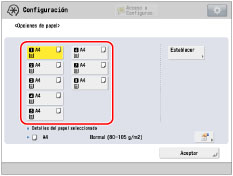 El origen de papel acepta tamaños de papel no disponibles con el origen de papel externo. Asegúrese de establecer tamaños que estén disponibles con el origen de papel externo. |