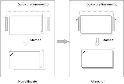 Se la posizione della guida di allineamento è troppo vicina alla carta si può verificare un inceppamento o un'arricciatura. Assicurarsi di eseguire la regolazione fine della posizione della guida di allineamento. |