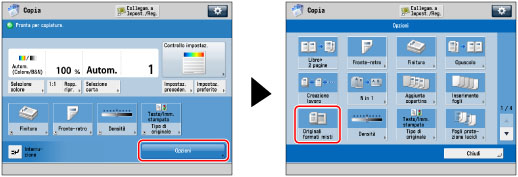 Se si utilizza [1 lato 2 lati] insieme al modo [Originali formati misti], le copie verranno stampate come copie a un lato su carta del rispettivo formato. |