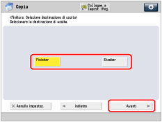 Quando la destinazione di uscita è impostata sul finisher | Quando la destinazione di uscita è impostata sull'area di impilatura dello stacker |