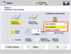 È possibile impostare [Specifica n. copie da impil.] solo se si seleziona [Area impilatura] per <Destinazione uscita stacker>. |