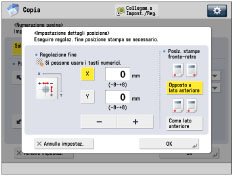 È possibile premere [Impostazione dettagli] per regolare la posizione di stampa e impostare la posizione di stampa per il lato posteriore quando si esegue la copiatura fronte-retro.