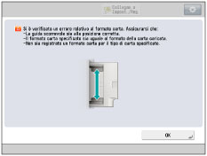 Se viene visualizzata una schermata che chiede di regolare le guide scorrevoli, regolare la larghezza delle guide scorrevoli → specificare il formato carta → premere [OK]. ![]() Se si commette un errore durante l'immissione dei valori, premere → digitare i valori corretti.Per selezionare un formato carta memorizzato in un tasto di formato (da [S1] a [S5]), occorre memorizzare preventivamente il formato carta irregolare nel tasto di formato. Per istruzioni su come conservare i formati carta non standard, vedere "Registrazione/modifica/eliminazione dei formati di carta personalizzati". |
