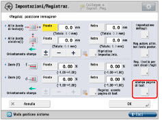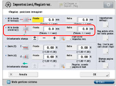 Quando si apre nuovamente la schermata dopo averla chiusa premendo [OK], i valori sullo schermo vengono riportati a '0'. Tuttavia il valore regolato è ancora valido nel campo Totale. Se si ripete il passaggio, controllare la lunghezza di 'i' sulla nuova pagina di test e inserire il nuovo valore. |
