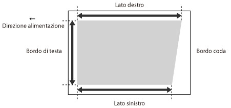 Questa impostazione permette di correggere la forma dell'immagine bilanciando la lunghezza del lato destro e sinistro dell'area di stampa quando l'immagine è stampata come un trapezio.