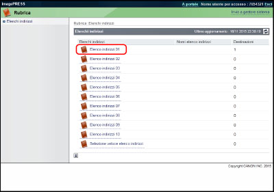 Fare clic su [Rubrica] → selezionare l'elenco indirizzi per modificare le impostazioni.